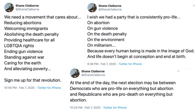 The charge is made that those who identify as pro-life should be advocating not only against abortion but also the death penalty, and be similarly concerned about other issues that endanger human life, like gun control, militarism, and climate change. These recent tweets by Christian social activist Shane Claiborne make the point.